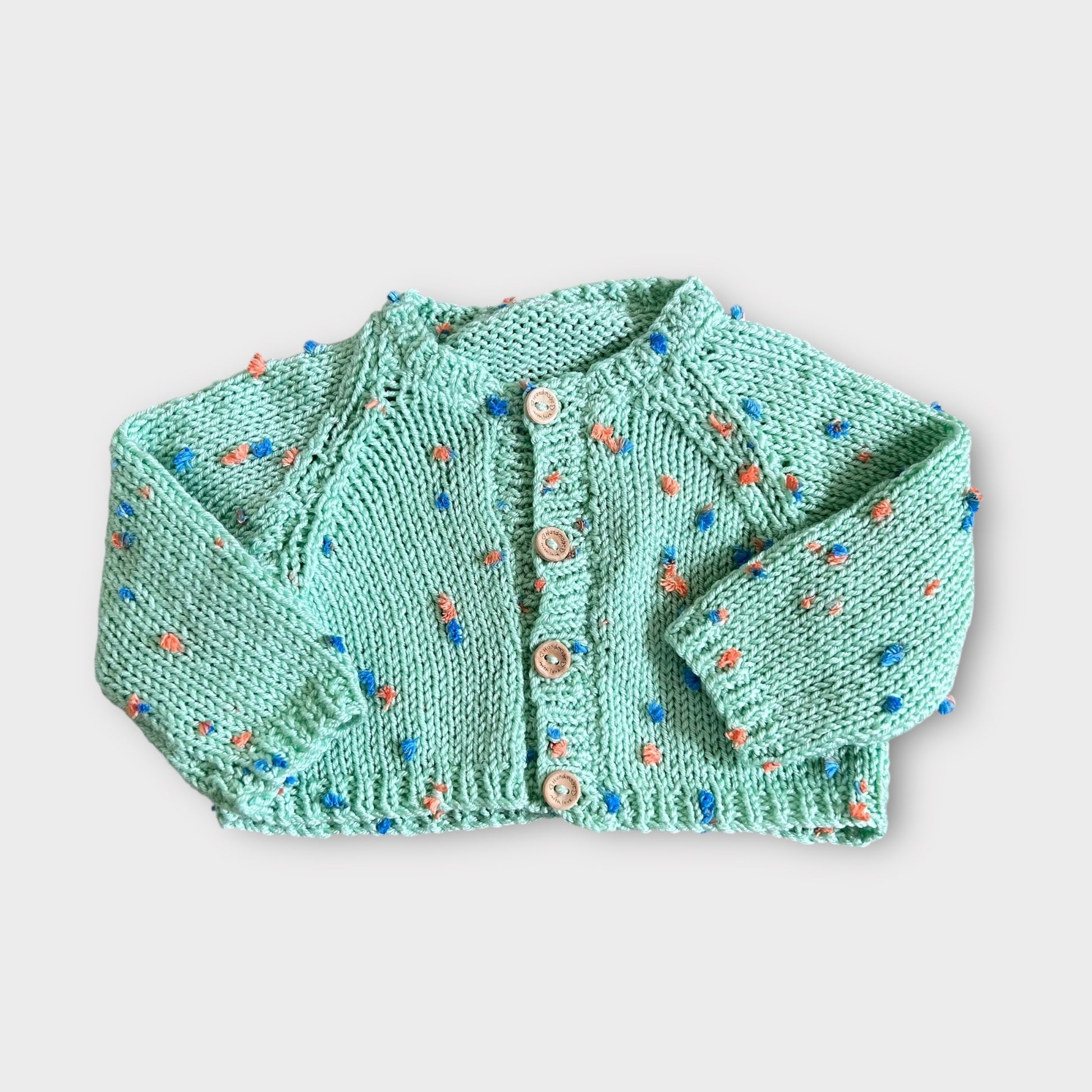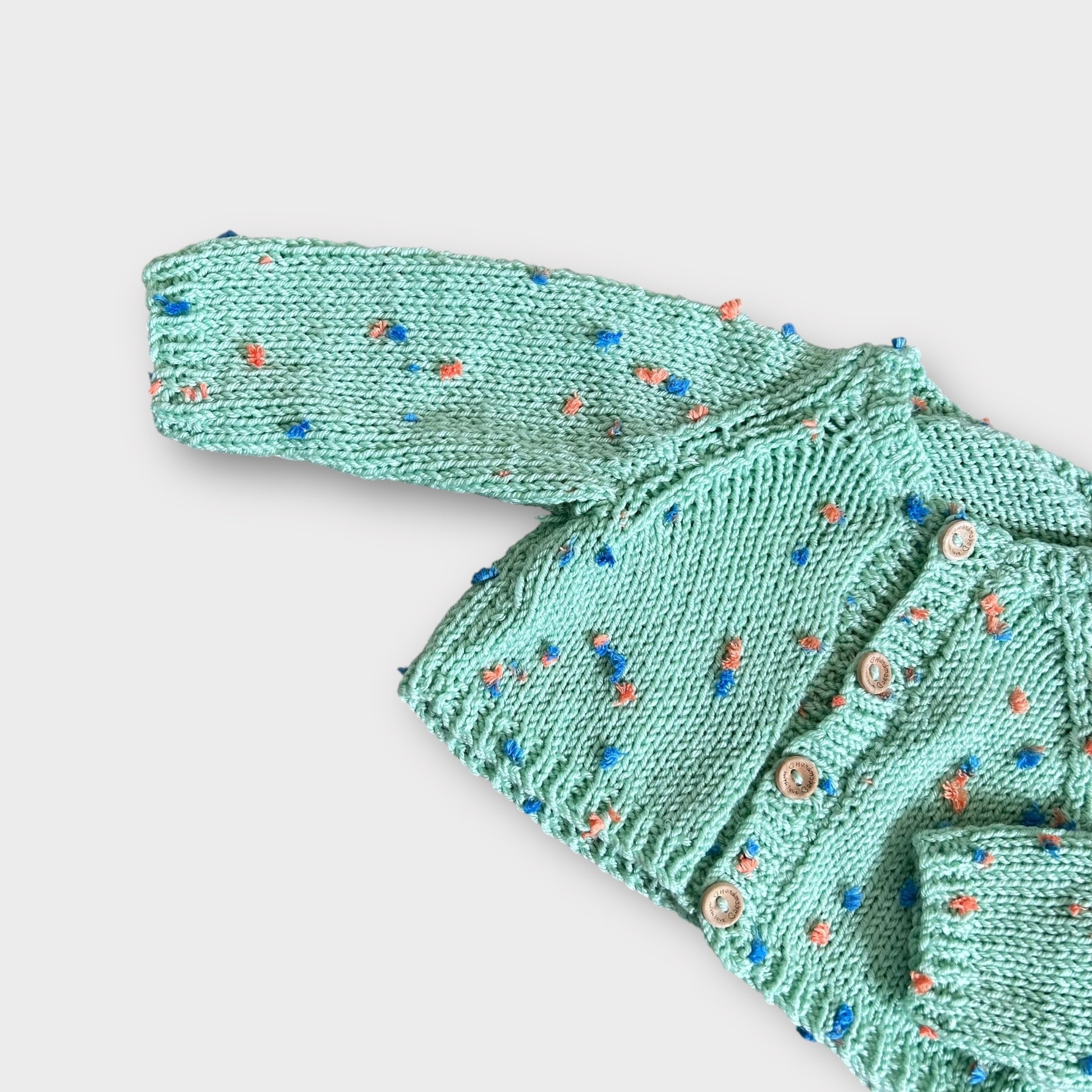 0-6 Months Hand Knitted Mint Green Speckled Knit Cardigan
