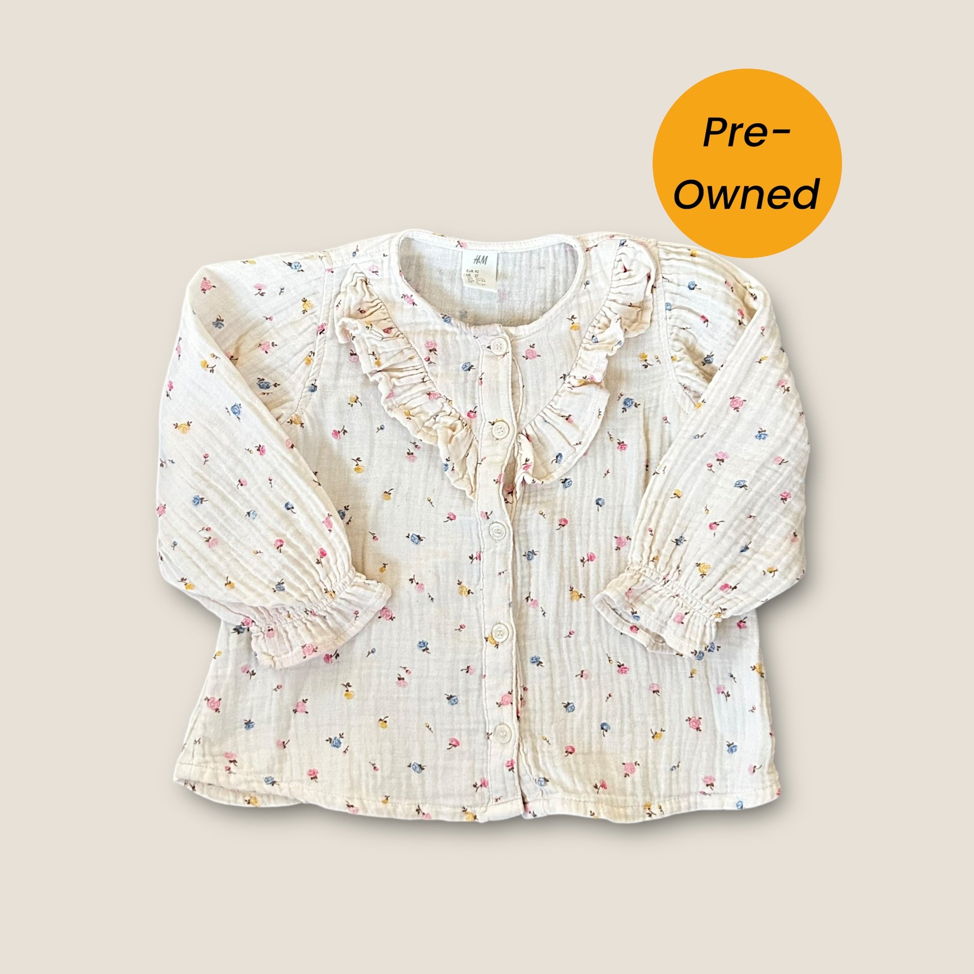 1.5-2 Years H&M Cream Floral Muslin Long Sleeve Top