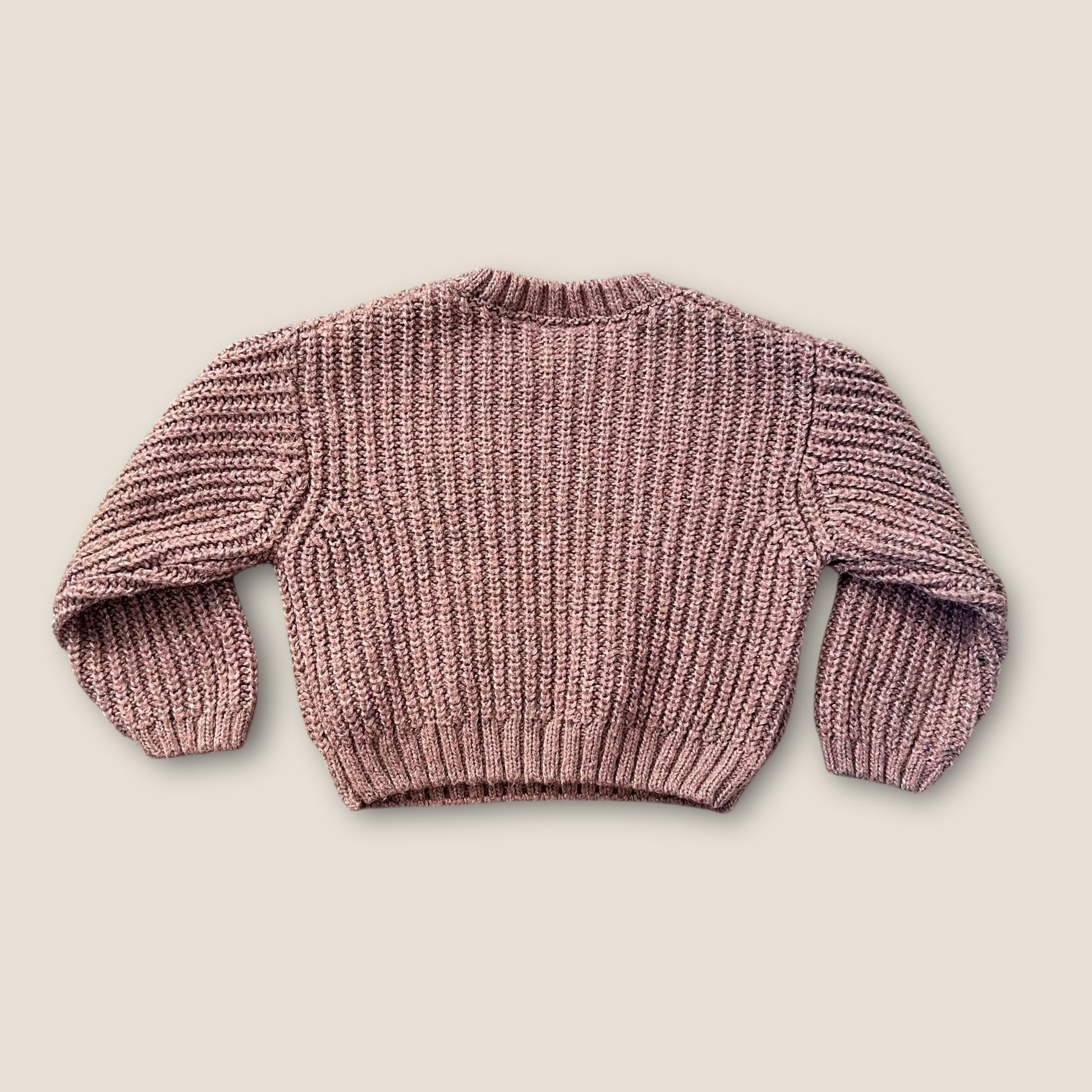 A gorgeous chunky knitted brown jumper with embroidered cream florals on the neckline.