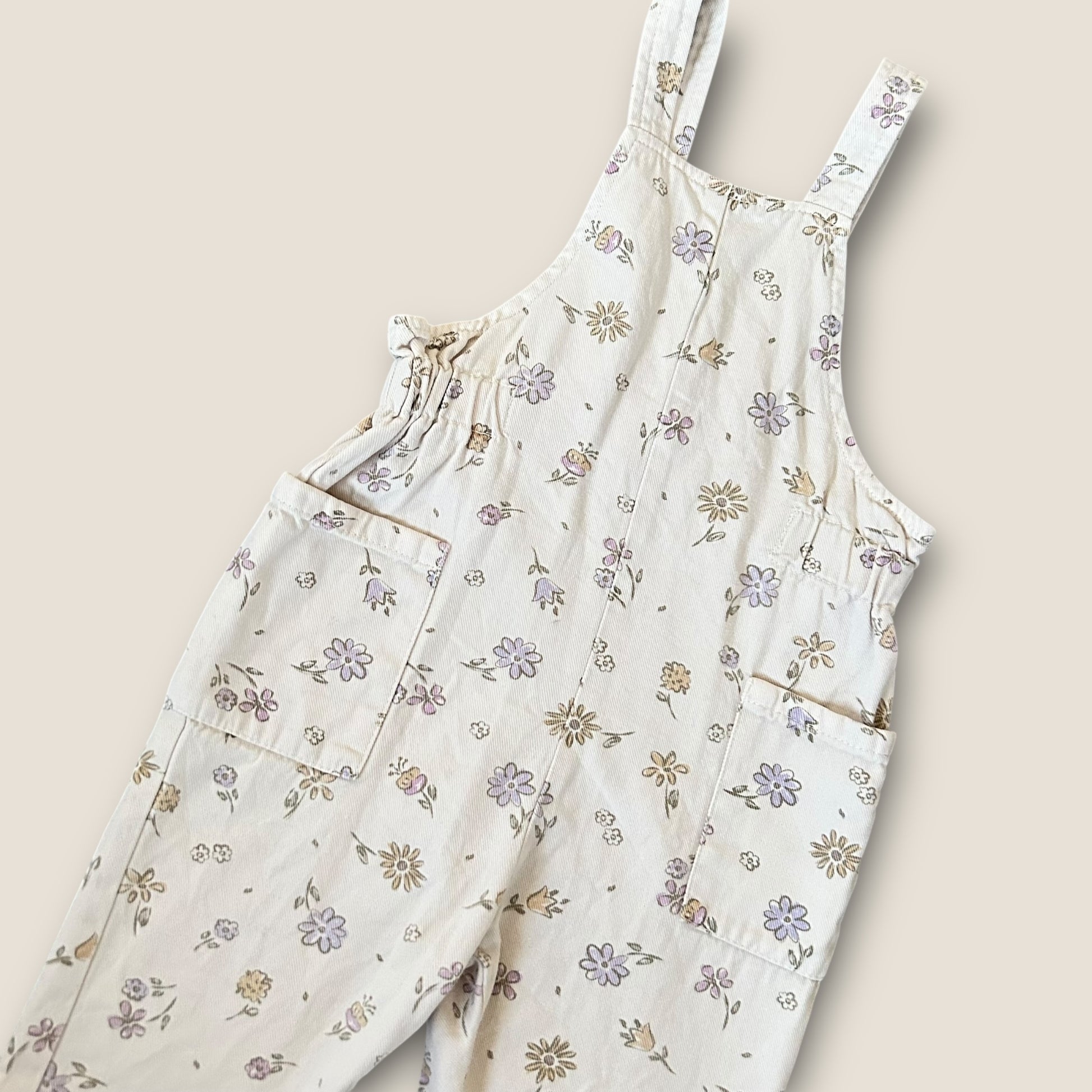 A gorgeous pair of cream denim/cotton dungarees in a soft pastel floral print.