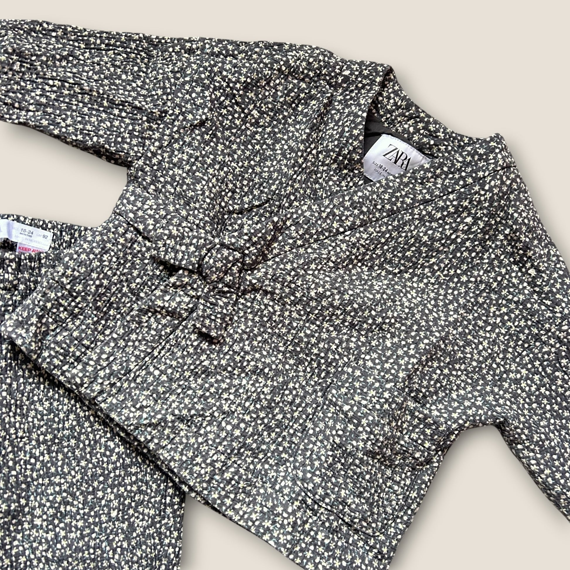 18-24 Months Zara Navy Blue Floral co ord Kimono Jacket and Trousers Set