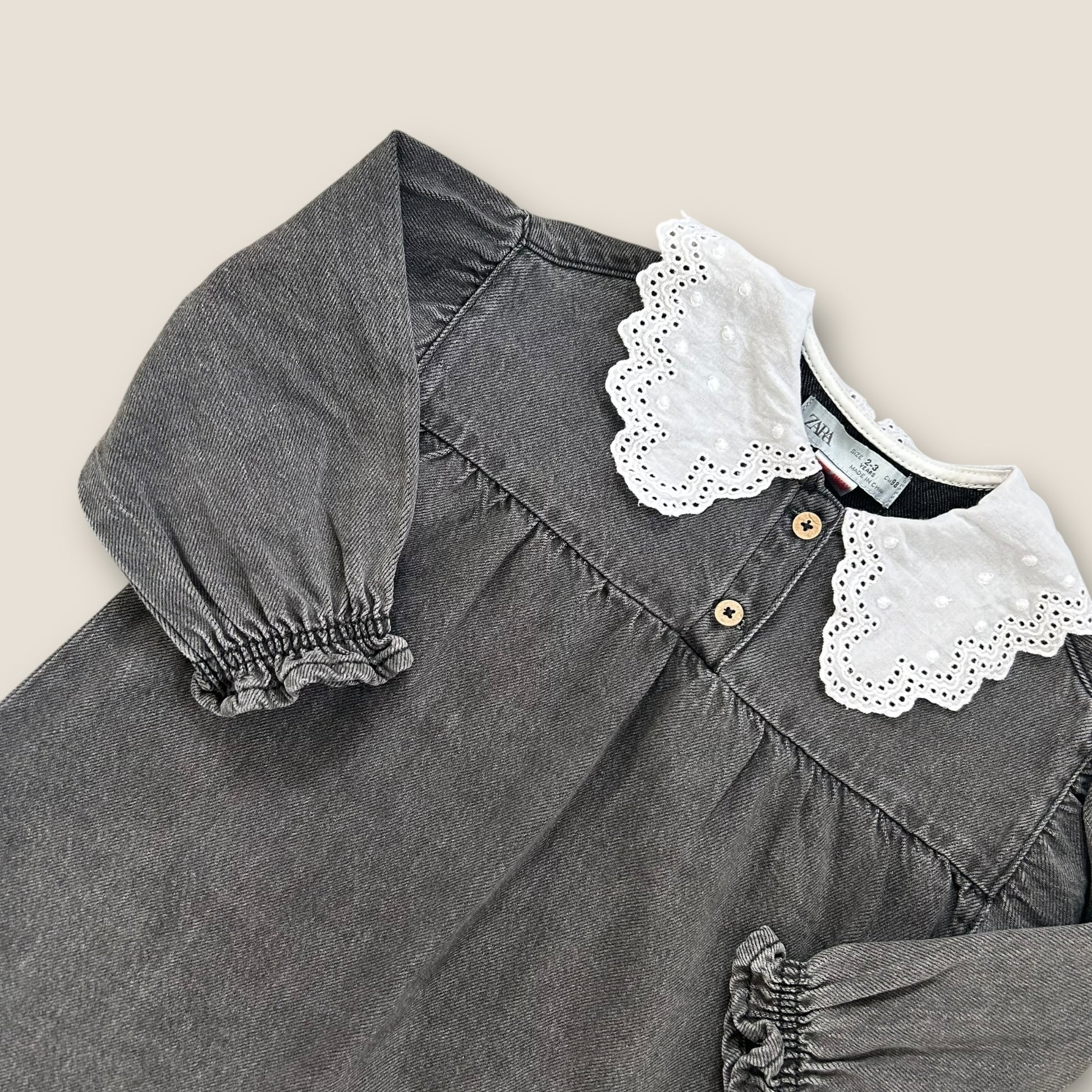 2-3 Years Zara Girls Washed Black Denim Shirt Dress with Statement Collar