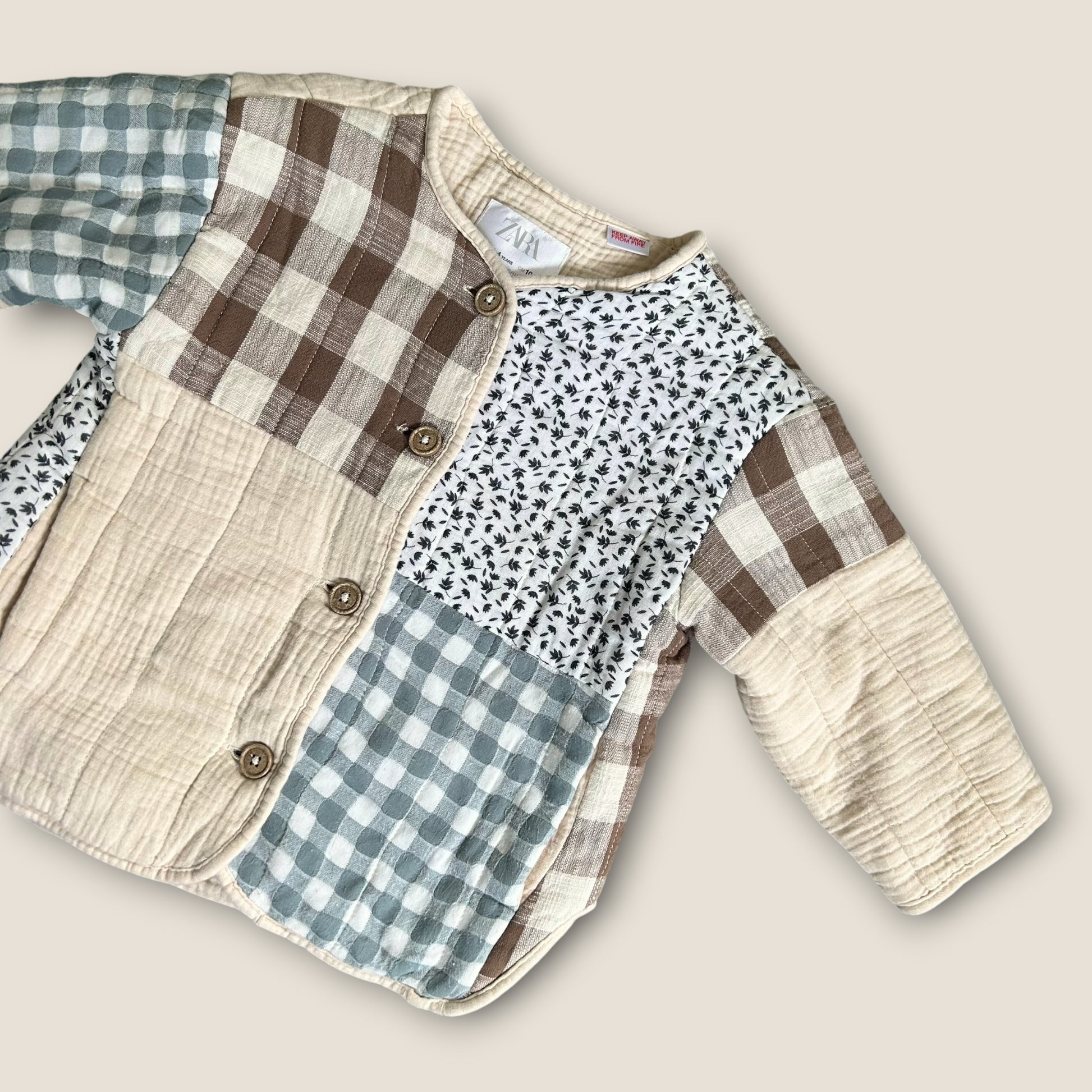 3-4 Years Zara Girls Beige Cream Patchwork Quilted Jacket