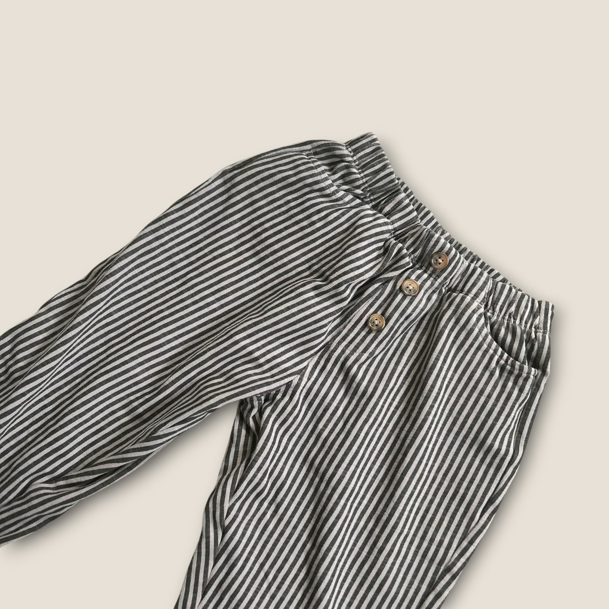 A gorgeous pair of charcoal and grey striped wide/loose jersey trousers.