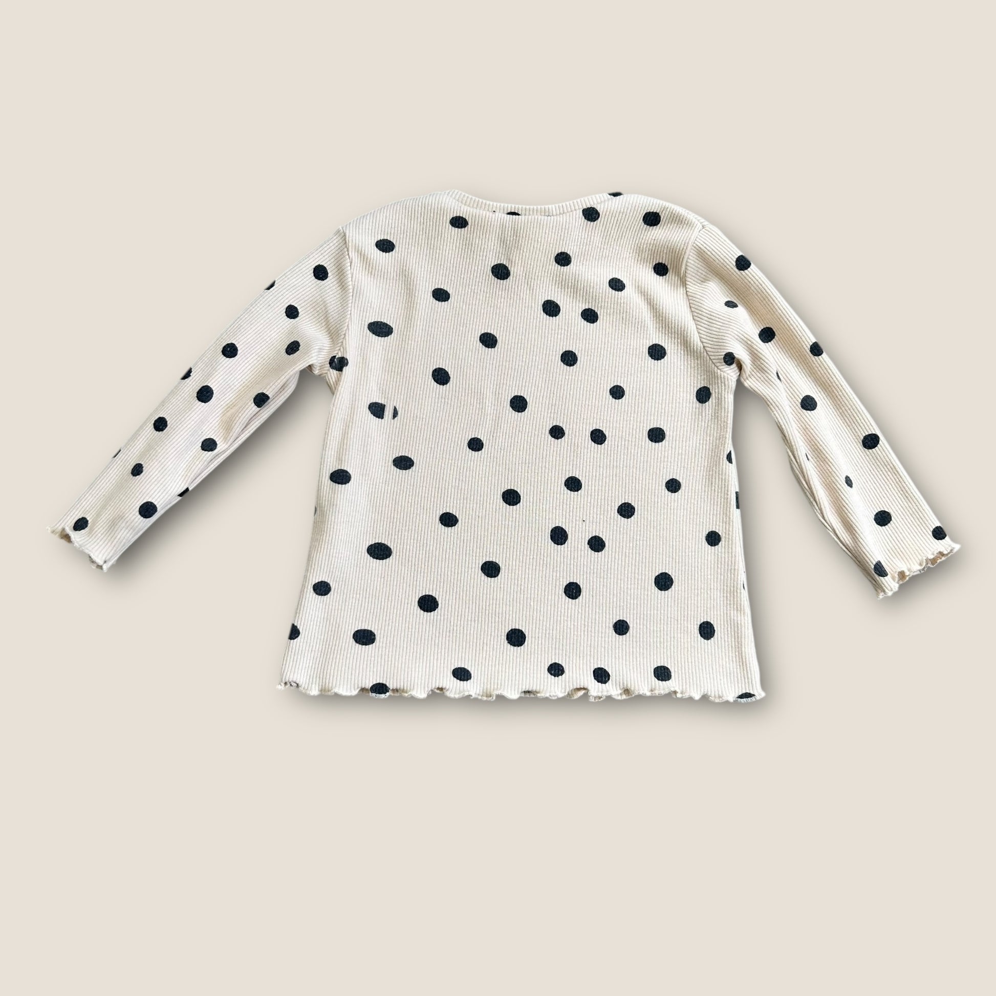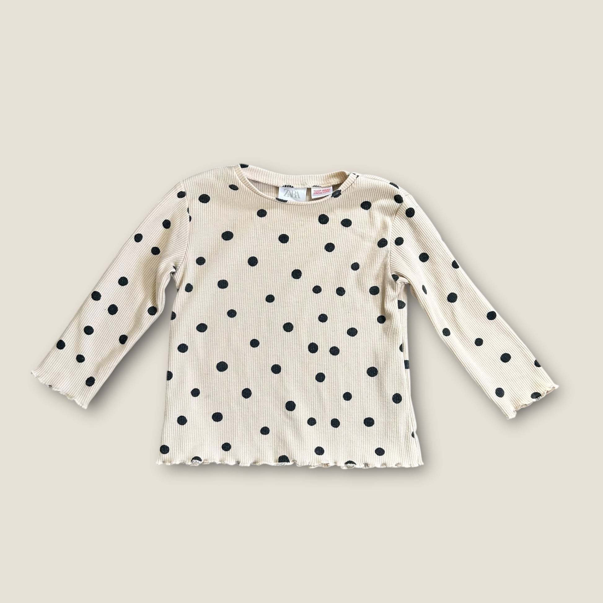 6-9 Months Zara Cream and Black Polka Dot Ribbed Jersey Long Sleeve Top