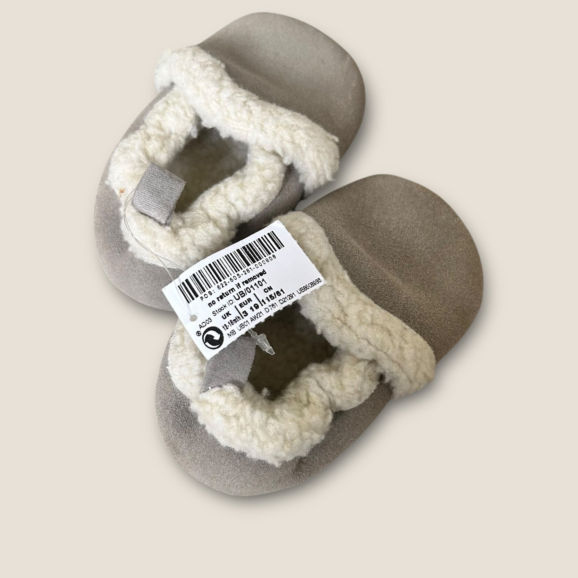 UK Infant Size 3 Next Pre Walker Grey Suede Sherpa Christmas Slippers/Shoes NEW