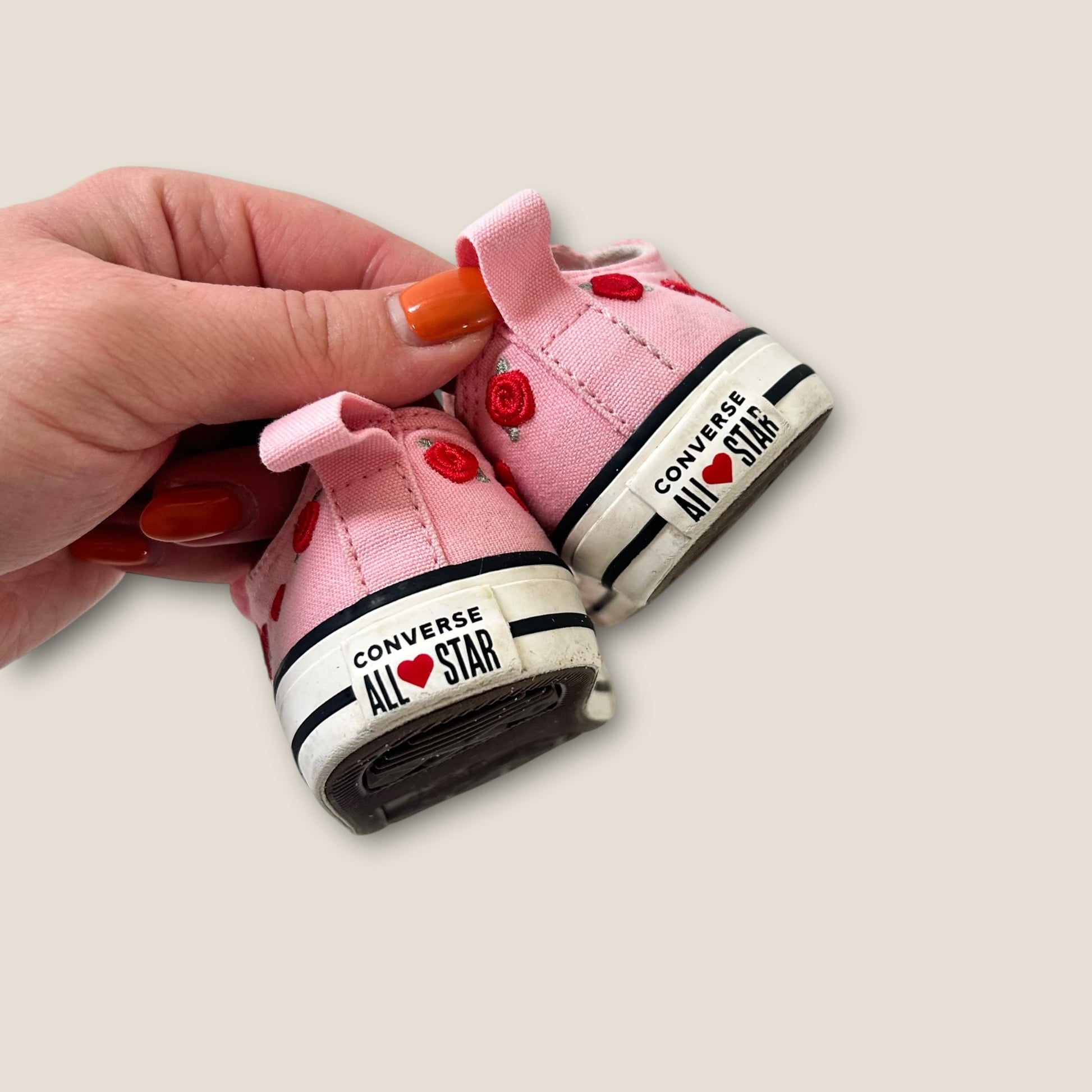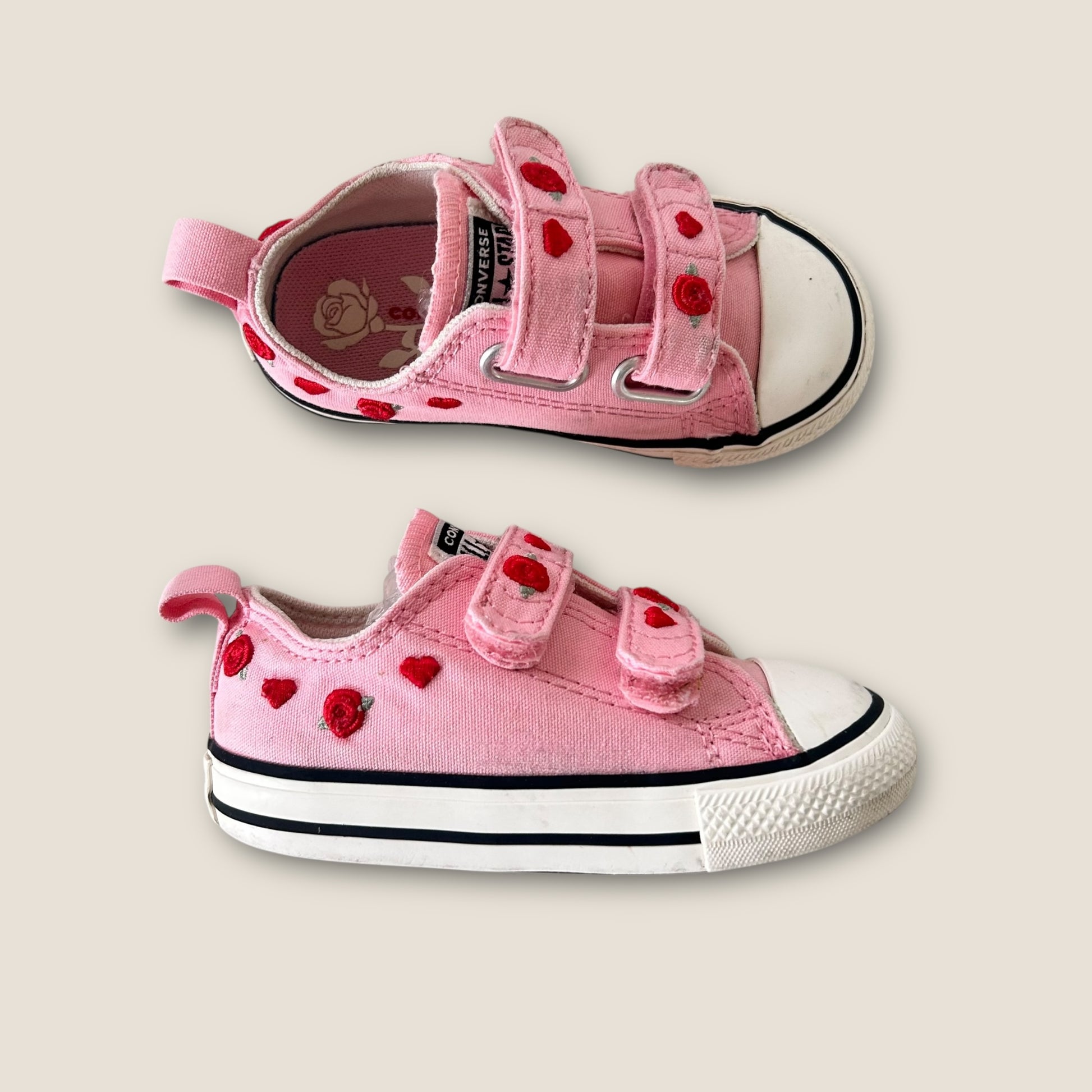 UK Infant Size 6 Pink Roses Embroidered Low Converse Velcro Trainers